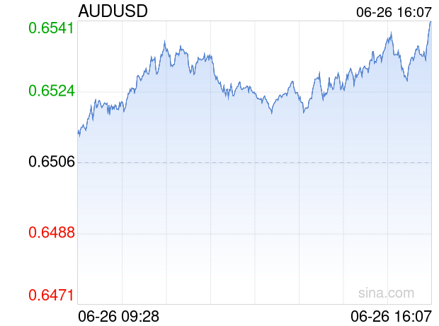 新浪外汇消息2025年06月26日,截至16时06分,外汇市场上澳元兑美元汇率突破1澳元兑换0.6541美元。涨幅为0.5380%