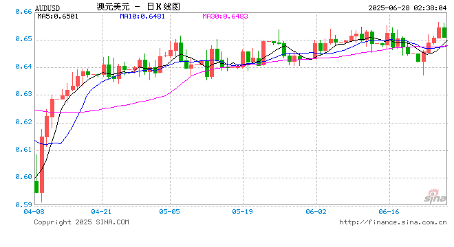 06月28日 澳元兑美元跌破0.6510 折算100澳元汇率兑468.6300人民币