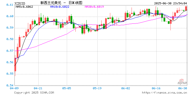 06月30日 新西兰元兑美元突破0.6088 折算100新西兰元汇率兑435.6000人民币