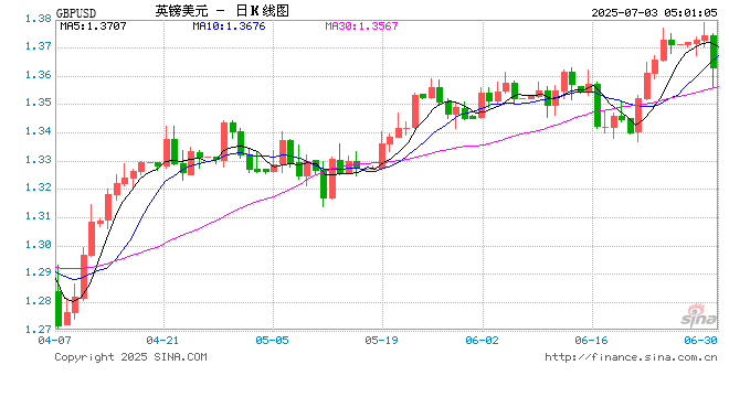 07月03日 英镑兑美元跌破1.3633 折算100英镑汇率兑976.5800人民币