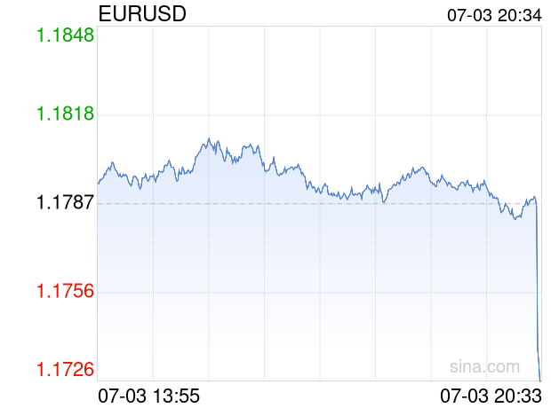 新浪外汇消息2025年07月03日,截至20时34分,外汇市场上欧元兑美元汇率跌破1欧元兑换1.1727美元。跌幅为-0.5082%