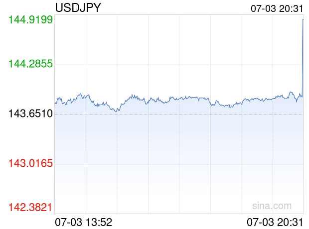 新浪外汇消息2025年07月03日,截至20时31分,外汇市场上美元兑日元汇率突破1美元兑换144.8550日元。涨幅为0.8381%