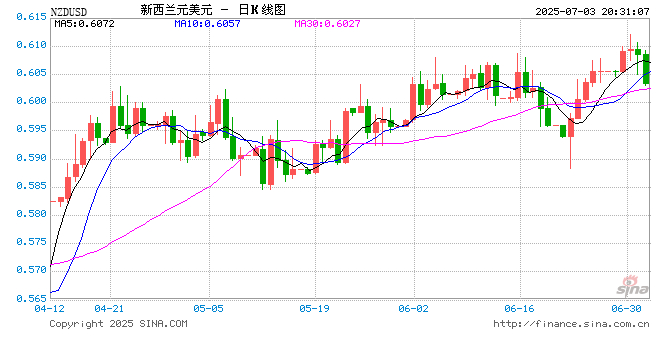 07月03日 新西兰元兑美元跌破0.6035 折算100新西兰元汇率兑433.9000人民币
