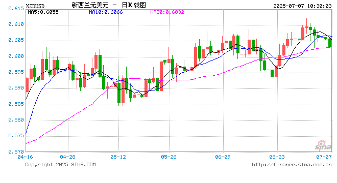 07月07日 新西兰元兑美元跌破0.6030 折算100新西兰元汇率兑432.0000人民币