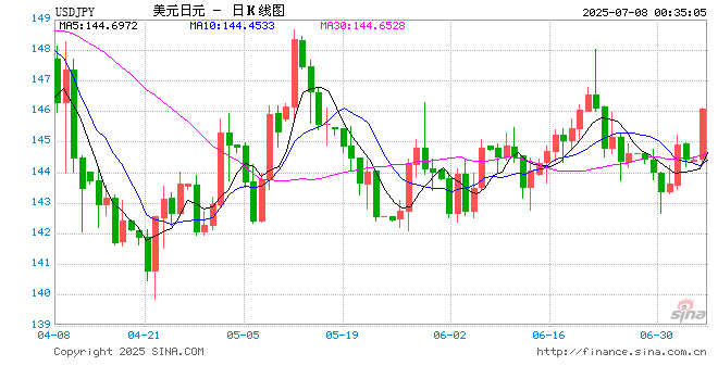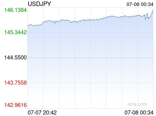 新浪外汇消息2025年07月08日,截至00时34分,外汇市场上美元兑日元汇率突破1美元兑换146.0700日元。涨幅为1.0515%