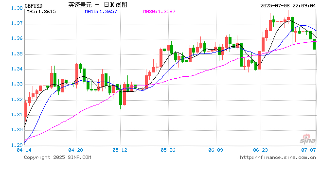 07月08日 英镑兑美元跌破1.3531 折算100英镑汇率兑970.9681人民币
