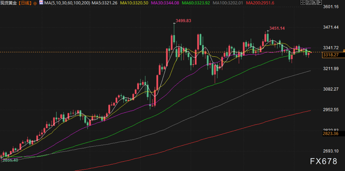 汇通财经APP讯——周四(北京时间7月10日),现货黄金交投于3318.85美元/盎司附近,金价周三略有上涨,投资者密切关注美国与其贸易伙伴之间的谈判,特朗普再向7国发出加码关税信函,而美元走强抑制了金价的进一步上涨;美原油交投于68.19美元/桶附近,油价周三持稳,投资者权衡了强劲的美国汽油需求数据和红海航运遇袭事件,同时美国即将征收铜关税。
