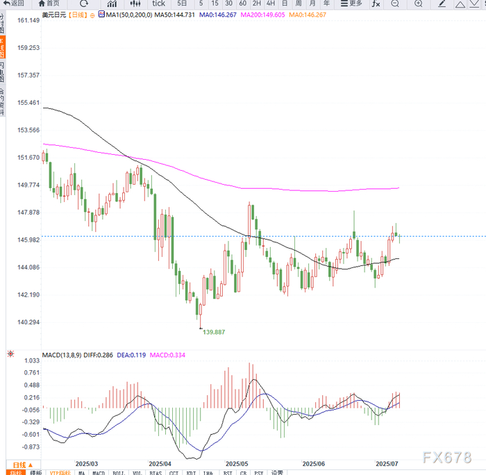 尽管基本面偏空,但日元作为避险资产仍吸引部分买盘。美国总统特朗普宣布自8月1日起对八国商品加征20%至50%的新关税,并威胁若遭反制将进一步加码,对市场构成压力。