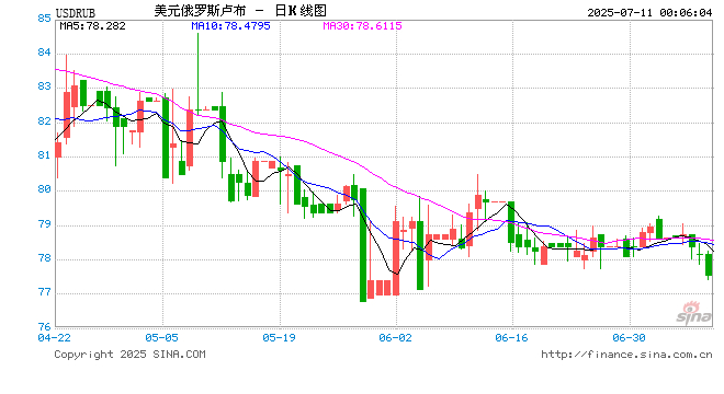 07月11日 美元兑俄罗斯卢布跌破74.0455 折算100俄罗斯卢布汇率兑9.6898人民币