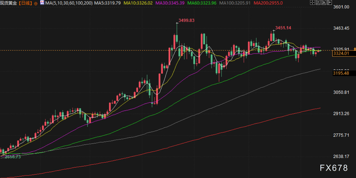 汇通财经APP讯——周五(北京时间7月11日),现货黄金交投于3324美元/盎司附近,金价周四波动不大,因为美元走强抵消了美国总统特朗普最新关税政策的影响,带来寻求避开地缘政治风险的投资者的买盘。美原油交投于66.90美元/桶附近,油价周四下跌超2%,因投资者权衡美国总统特朗普的关税措施对全球经济增长的潜在影响,且以色列总理称考虑在实现临时停火60天后结束加沙冲突。