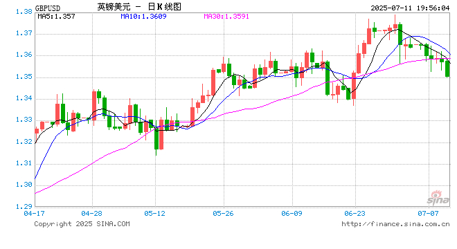 07月11日 英镑兑美元跌破1.3504 折算100英镑汇率兑968.2417人民币