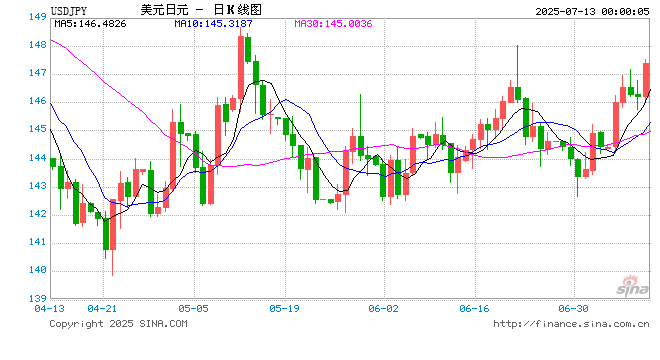 新浪外汇消息2025年07月12日,截至04时59分,外汇市场上美元兑日元汇率突破1美元兑换147.4000日元。涨幅为0.7863%