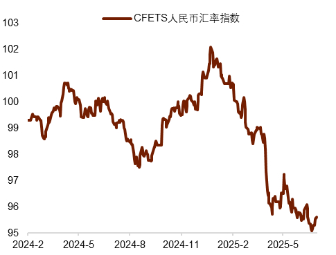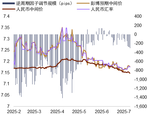 中间价稳定升值,或帮助人民币汇率预期偏稳在上周美元指数趋于反弹的背景下,人民币中间价延续了此前连续升值的趋势,或对人民币汇率预期起到了积极意义。具体而言,上周中间价升至7.1475,连续9周调强,为2024年11月以来首次升破7.15。在岸人民币汇率与中间价的差距逐步拉开,以彭博预期中间价衡量的逆周期因子调节规模亦升至300点以上,为5月12日后首次(图表4)。