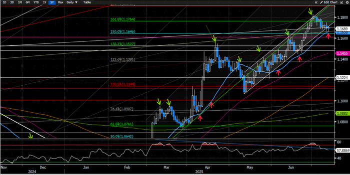 ►欧元上周自高位明显回落,周初特朗普宣布对部分国家加征新关税带动市场风险偏好明显走弱,而随后公布的6月FOMC会议纪要以及较强的美国经济数据基本排除了市场对7月美联储降息的预期,欧盟上周虽然未收到美国政府加征关税的来信,但在7月9日首轮关税免征期截止之前依旧没能和美国达成协议。在美元上周整体反弹的背景下,欧元上周最终收跌0.76%左右。
