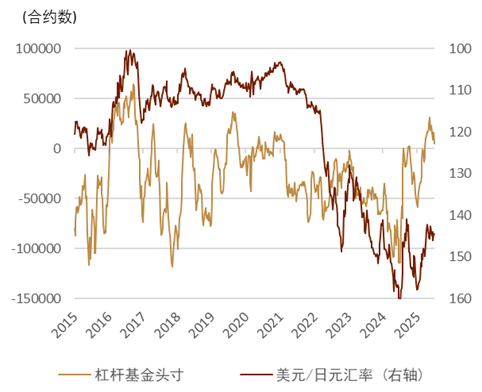 强美元、弱日元 上周美元整体偏强,特朗普对多国加征关税的消息助推了美元的走强,日本金融市场认为关税的实施可能会给日本经济带来扰动,进而或推迟日本央行加息的时期,进而为日元贬值因素。因此上周日元相较美元贬值约2.01%,为最弱G10、亚洲货币。上周美日汇率与美元指数的走势高度相似(图表15),反映出日元方面缺乏主体性,更多是美元一侧的变动。息差方面,美日汇率上周与美债10年利率的关系有所恢复 (图表16),但另一方面美日息差与美日汇率掉期点近期波动不大(图表17、图表18),其实在过去数周美日的10年息差有所收窄,但是日元依旧疲软,我们认为同日本经常收支的结构性资金流出有关。期货市场来看,截至7月8日杠杆基金对日元的净多头有所减少,表明市场看多日元的观点有所“降温”,相关头寸的缩小或也是助推日元走弱的力量 (图表19)。