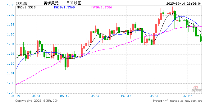 07月14日 英镑兑美元跌破1.3431 折算100英镑汇率兑962.8346人民币