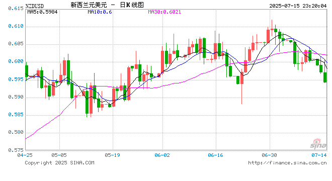 07月15日 新西兰元兑美元跌破0.5942 折算100新西兰元汇率兑426.4392人民币