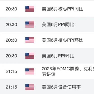 7月16日周三,新西兰在基本面上暂无重要数据和事件公布。全球市场焦点将集中于今日北京时间晚上20点30分,美国即将发布的PPI生产者价格指数。