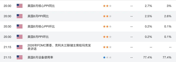 美国将在今日公布的PPI生产者价格指数将成为纽币短线价格走势主要催化剂。需要注意的是,美国上月核心PPI同比已高达3%,大幅超过联储的2%目标区间。若6月数据延续上行趋势,可能说明企业已难以继续吸收关税带来的成本压力,转而通过提价传导至消费端。