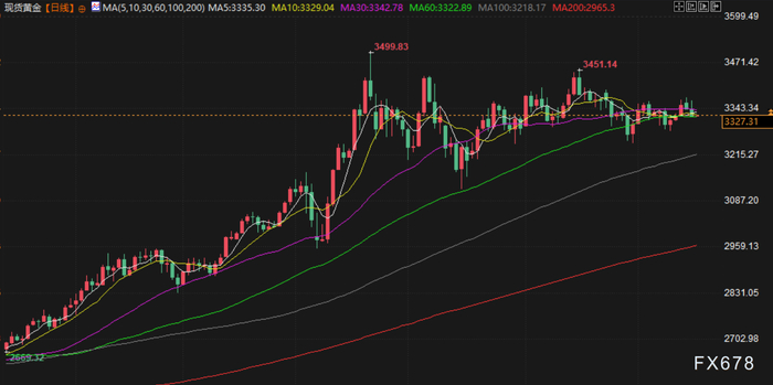汇通财经APP讯——周三(北京时间7月16日),现货黄金交投于3327美元/盎司附近,金价周二下跌,市场参与者等待关税最新消息,与此同时,通胀报告显示上月美国消费者物价上涨,符合普遍预期;美原油交投于66.84美元/桶附近,油价周二微跌,此前美国总统特朗普要求俄罗斯在 50天内结束乌克兰战争以避免制裁,缓解了人们对出现任何立即供应中断的担忧,OPEC表示,石油需求将在第三季度保持“非常强劲”。