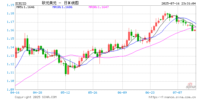 新浪外汇消息2025年07月16日,截至23时30分,外汇市场上欧元兑美元汇率突破1欧元兑换1.1718美元。涨幅为1.0259%