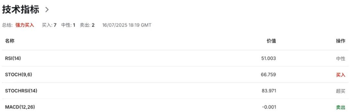 技术指标显示,布林带中轨切入点指向的1.3670区域水平构成美加短期动态支撑,汇价当前贴合中轨向上运行,表明多头动能正积蓄能量为其挑战上轨动态阻力区域提供支持。上轨切入点指向1.3765为美加提供短期动态阻力。与此同时,14日RSI相对强弱指标小幅回落至49.65中性水平附近区域,但未进入偏弱区域,多空力量仍保持相对均衡,显示汇价或进入阶段性方向选择。