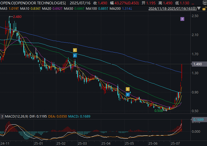 截至周三收盘,Opendoor报于1.49美元。FactSet数据显示,这一价格目前仍远低于2021年初的峰值,当时Opendoor的股价曾超过30美元。