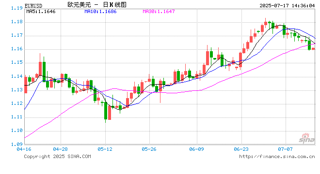 新浪外汇消息2025年07月17日,截至14时35分,外汇市场上欧元兑美元汇率跌破1欧元兑换1.1574美元。跌幅为-0.5157%