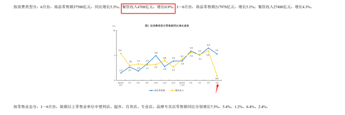 当下的内需状况好吗??并不好,6月全国的餐饮收入增速只有0.9%。