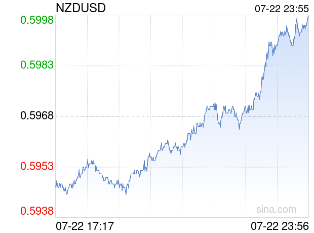 新浪外汇消息2025年07月22日,截至23时55分,外汇市场上新西兰元兑美元汇率突破1新西兰元兑换0.5998美元。涨幅为0.5027%