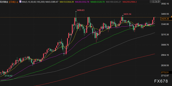 汇通财经APP讯——周三(北京时间7月23日),现货黄金交投于3432美元/盎司附近,金价周二攀升至五周最高,受助于贸易不确定性和美国公债收益率下跌,投资者继续关注美国总统特朗普8月1日的关税谈判最后期限;美原油交投于65.60美元/桶附近,油价周二连续第三个交易日下跌,因美欧达成贸易协议的希望渺茫,加剧了人们对全球最大石油市场经济放缓的担忧。