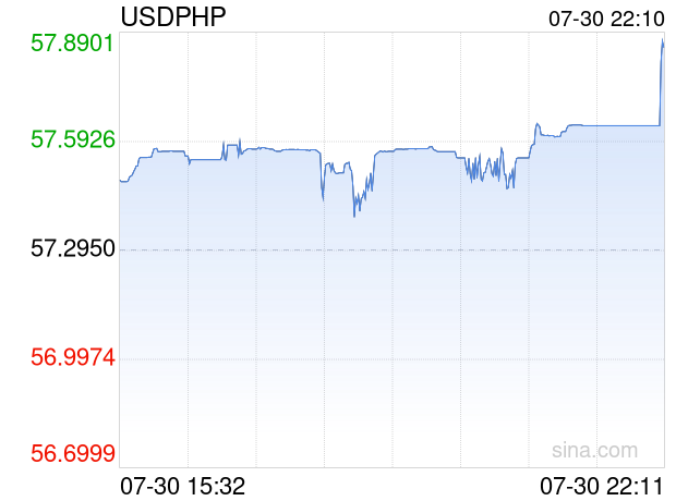 新浪外汇消息2025年07月30日,截至22时10分,外汇市场上美元兑菲律宾比索汇率突破1美元兑换57.8940菲律宾比索。涨幅为1.0455%