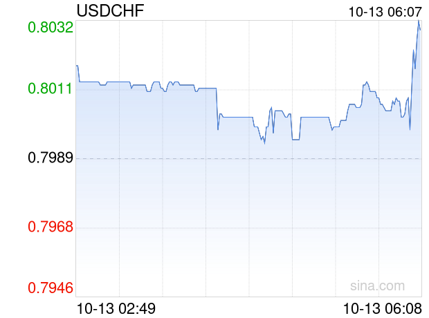 新浪外汇消息2025年10月13日,截至06时07分,外汇市场上美元兑瑞士法郎汇率突破1美元兑换0.8029瑞士法郎。涨幅为0.5007%