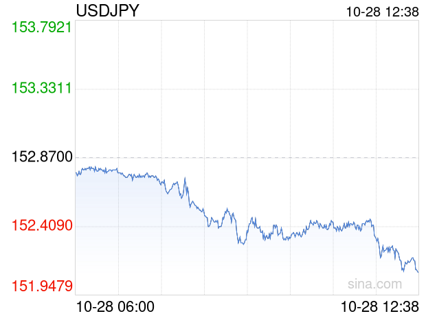 新浪外汇消息2025年10月28日,截至12时38分,外汇市场上美元兑日元汇率跌破1美元兑换152.1000日元。跌幅为-0.5037%