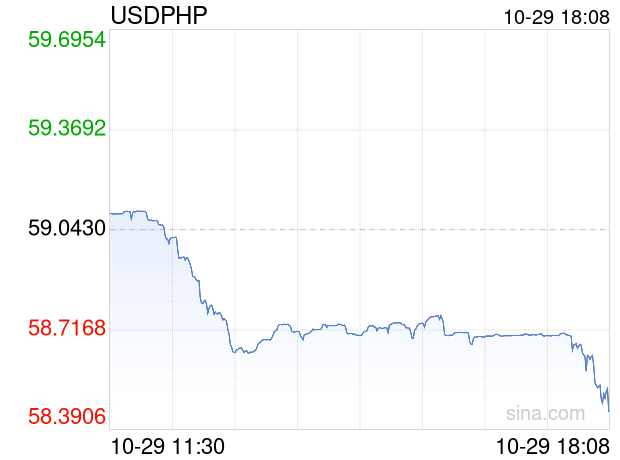 10月29日 美元兑菲律宾比索跌破58.4490 折算100菲律宾比索汇率兑12.1315人民币