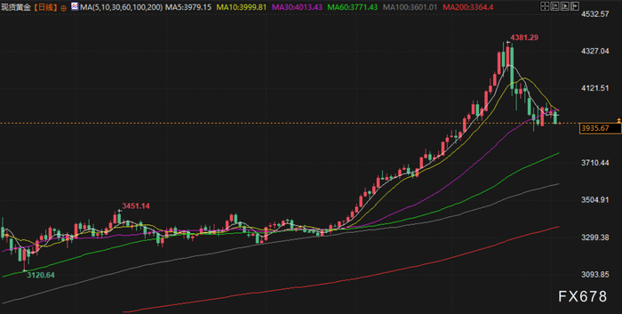 受美元走强和市场对美联储降息预期减弱的影响,金价周二大幅下跌近2%。现货金收于每盎司3940.75美元,下跌1.5%;12月交割的美国期金下跌1.3%,结算价报3960.50美元。