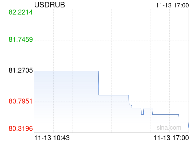 11月13日 美元兑俄罗斯卢布跌破80.4000 折算100俄罗斯卢布汇率兑8.8260人民币