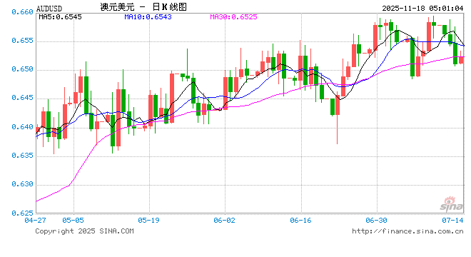 新浪外汇消息2025年11月18日,截至05时00分,外汇市场上澳元兑美元汇率跌破1澳元兑换0.6492美元。跌幅为-0.6732%