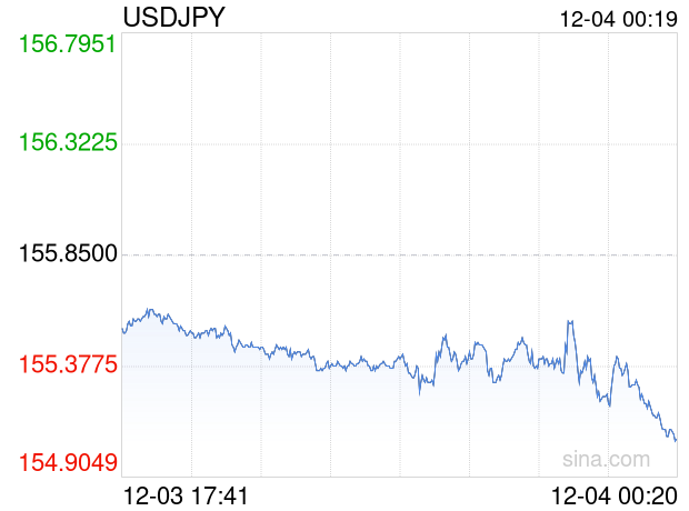 12月04日 美元兑日元跌破155.0700 折算100日元汇率兑4.5552人民币