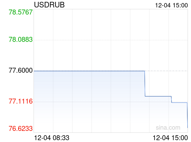 12月04日 美元兑俄罗斯卢布跌破76.7000 折算100俄罗斯卢布汇率兑9.2160人民币