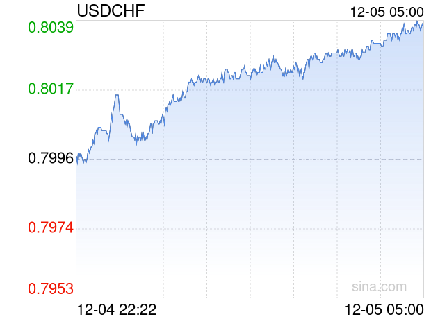 新浪外汇消息2025年12月05日,截至05时00分,外汇市场上美元兑瑞士法郎汇率突破1美元兑换0.8036瑞士法郎。涨幅为0.5002%