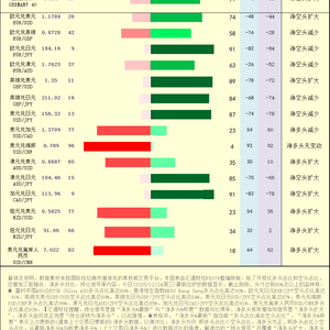 净空头减少的有:道琼斯指数US30、欧元兑英镑EUR/GBP、欧元兑日元EUR/JPY、欧元兑澳元EUR/AUD、英镑兑日元GBP/JPY、美元兑日元USD/JPY。净多头扩大的有:现货黄金XAU/USD、现货白银XAG/USD、香港恒生指数HK50 Hang Seng、澳元兑美元AUD/USD、纽元兑美元NZD/USD、纽元兑日元NZD/JPY、美元兑离岸人民币USD/CNH。净多头减少的有:富时中国A50☆FTSE China A50、标普500指数S&P 500、美元兑加元USD/CAD。