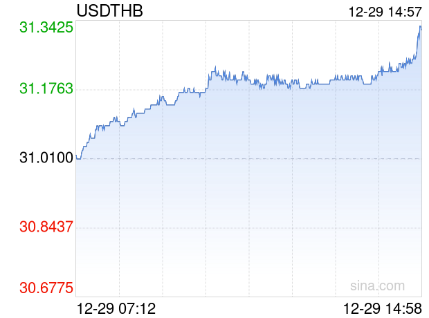 12月29日 美元兑泰铢突破31.3300 折算100泰铢汇率兑22.3789人民币