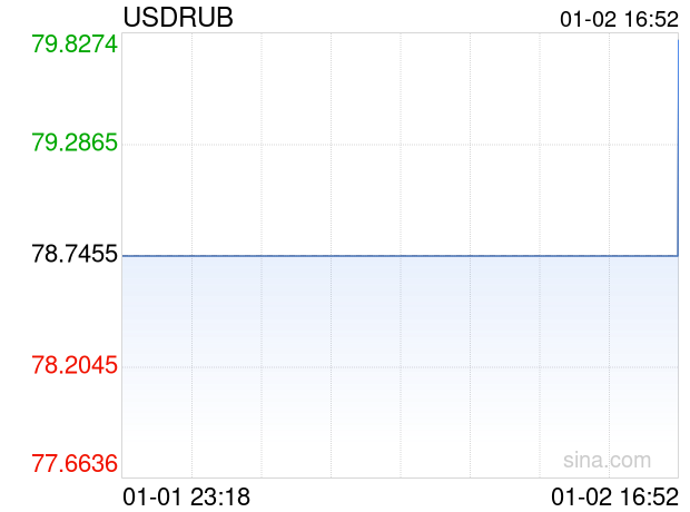 01月02日 美元兑俄罗斯卢布突破79.7955 折算100俄罗斯卢布汇率兑8.8205人民币