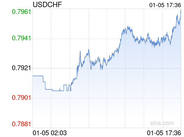 新浪外汇消息2026年01月05日,截至17时36分,外汇市场上美元兑瑞士法郎汇率突破1美元兑换0.7961瑞士法郎。涨幅为0.5050%