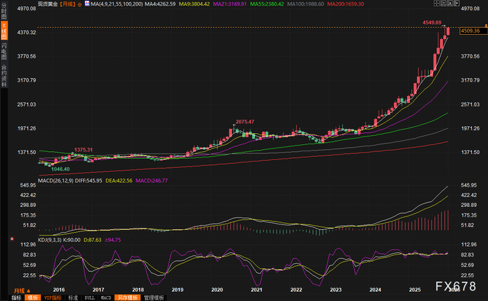 这张2026年金价月线图表,生动展示了多头们当前瞄准的下一个里程碑: