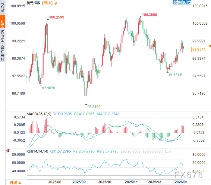 (美元指数日线图,来源:易汇通)北京时间10:11,美元指数现报98.96。