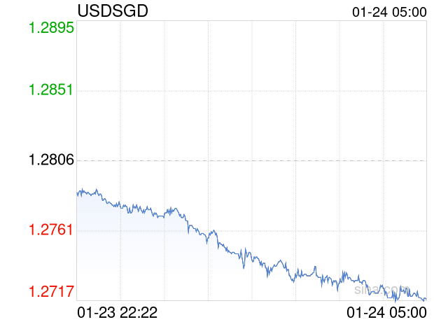 新浪外汇消息2026年01月24日,截至05时00分,外汇市场上美元兑新加坡元汇率跌破1美元兑换1.2722新加坡元。跌幅为-0.6559%