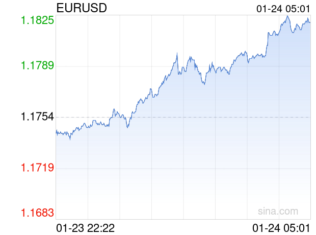 新浪外汇消息2026年01月24日,截至05时00分,外汇市场上欧元兑美元汇率突破1欧元兑换1.1821美元。涨幅为0.5700%