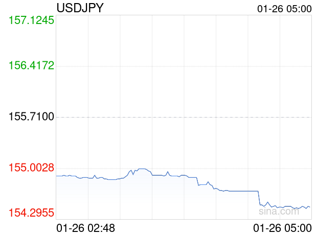 新浪外汇消息2026年01月26日,截至05时00分,外汇市场上美元兑日元汇率跌破1美元兑换154.4700日元。跌幅为-0.7964%